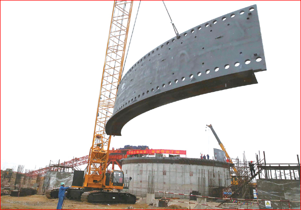 山鋼集團(tuán)日照鋼鐵精品基地1號(hào)5100m3高爐工程第一塊爐殼日前安裝就位,目前工程正按照1號(hào)高爐本體今年建成的目標(biāo)推進(jìn)。圖為施工現(xiàn)場(chǎng)。...